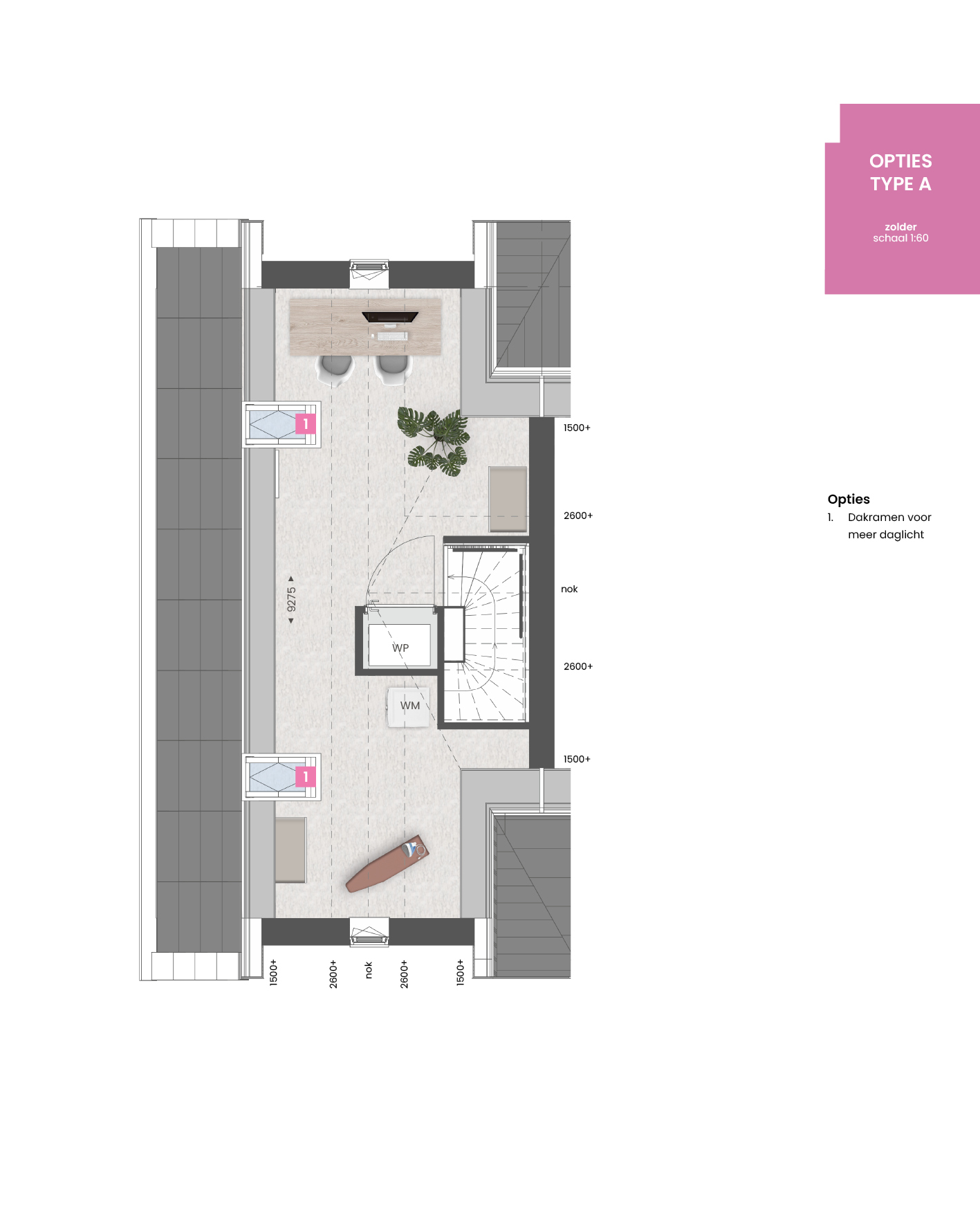 Deze woning heeft alles in huis om fijn te wonen. Een doordachte indeling, veel leefruimte, 3 slaapkamers op de eerste verdieping én een ruime tweede verdieping. Heb je of wens je meer eer ruimte? Met een uitbouw van 2400 mm aan de achterzijde vergroot je de woonkamer en maak je van dit huis jouw thuis. Bekijk de optieplattegronden hieronder voor alle mogelijkheden bij deze woning.