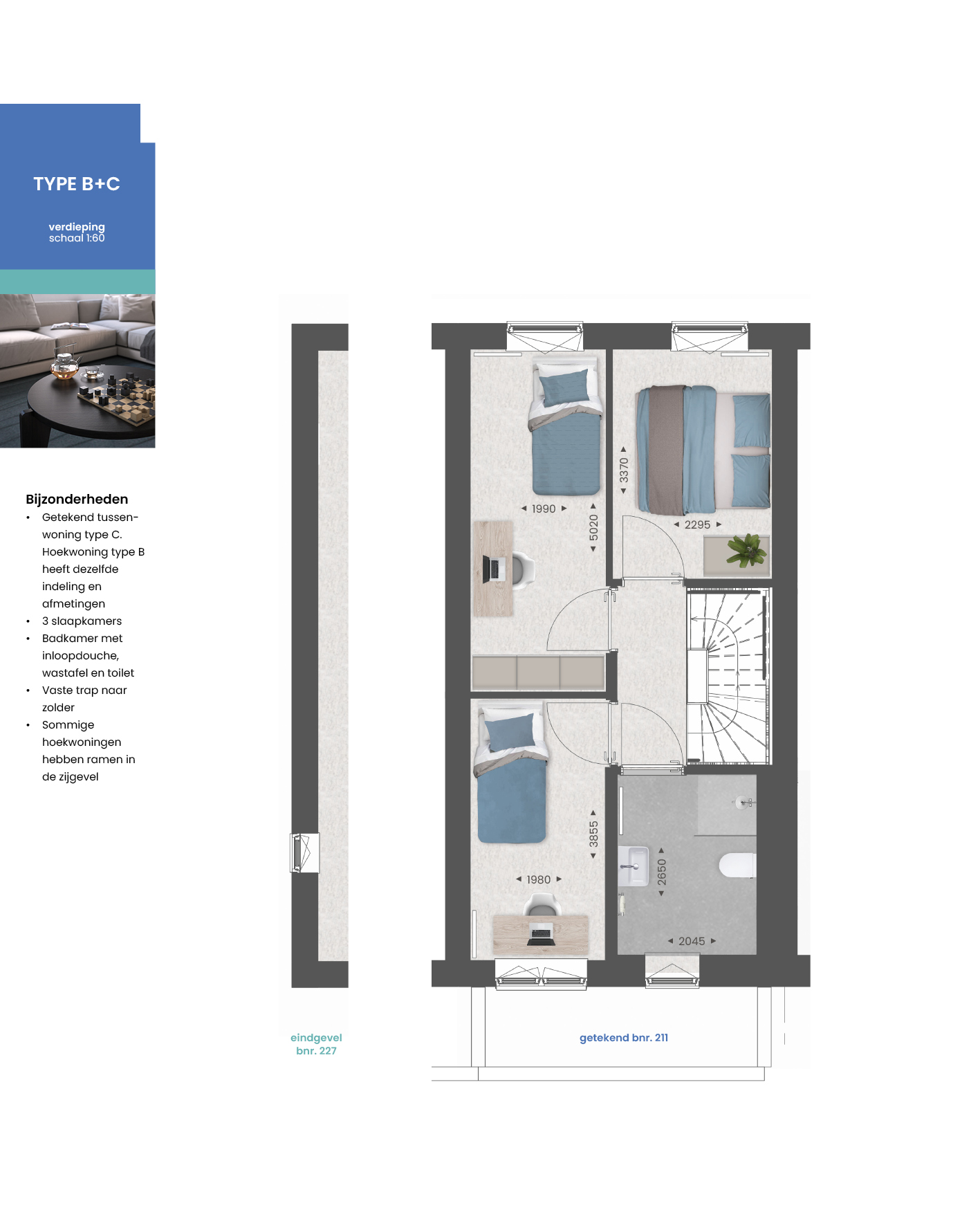 Deze woning heeft alles in huis om fijn te wonen. Een doordachte indeling, veel leefruimte, 3 slaapkamers op de eerste verdieping én een ruime tweede verdieping. Heb je of wens je meer ruimte? ? Met een uitbouw van 2400 mm aan de achterzijde vergoot je de woonkamer en maak je van dit huis jouw thuis. Bekijk de optieplattegronden hieronder voor alle mogelijkheden bij deze woning.